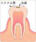 エナメル質(歯の表面の1番硬い組織)表面の虫歯で、象牙質までは達していないものです。初期う蝕(初期虫歯)とも呼ばれます。